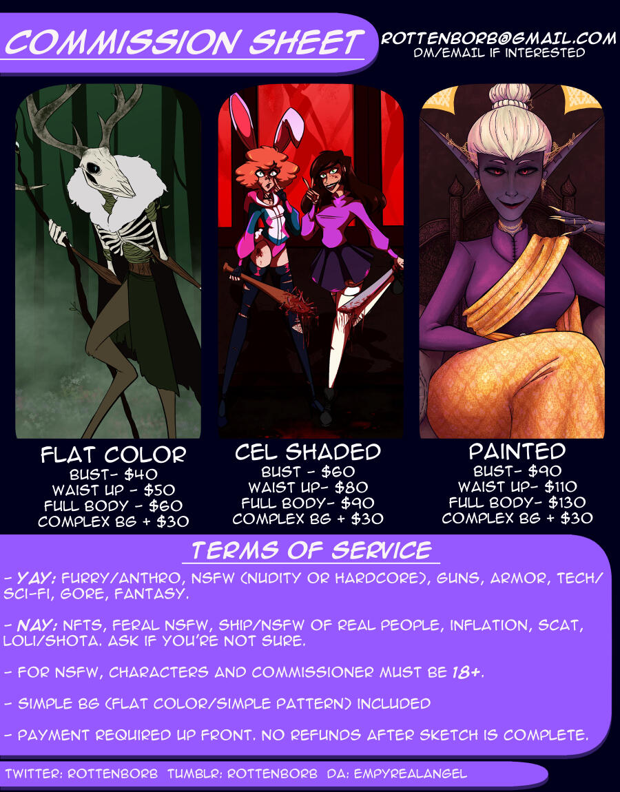 - I reserve the right to reject any commission I do not feel comfortable taking or do not feel I can execute properly.